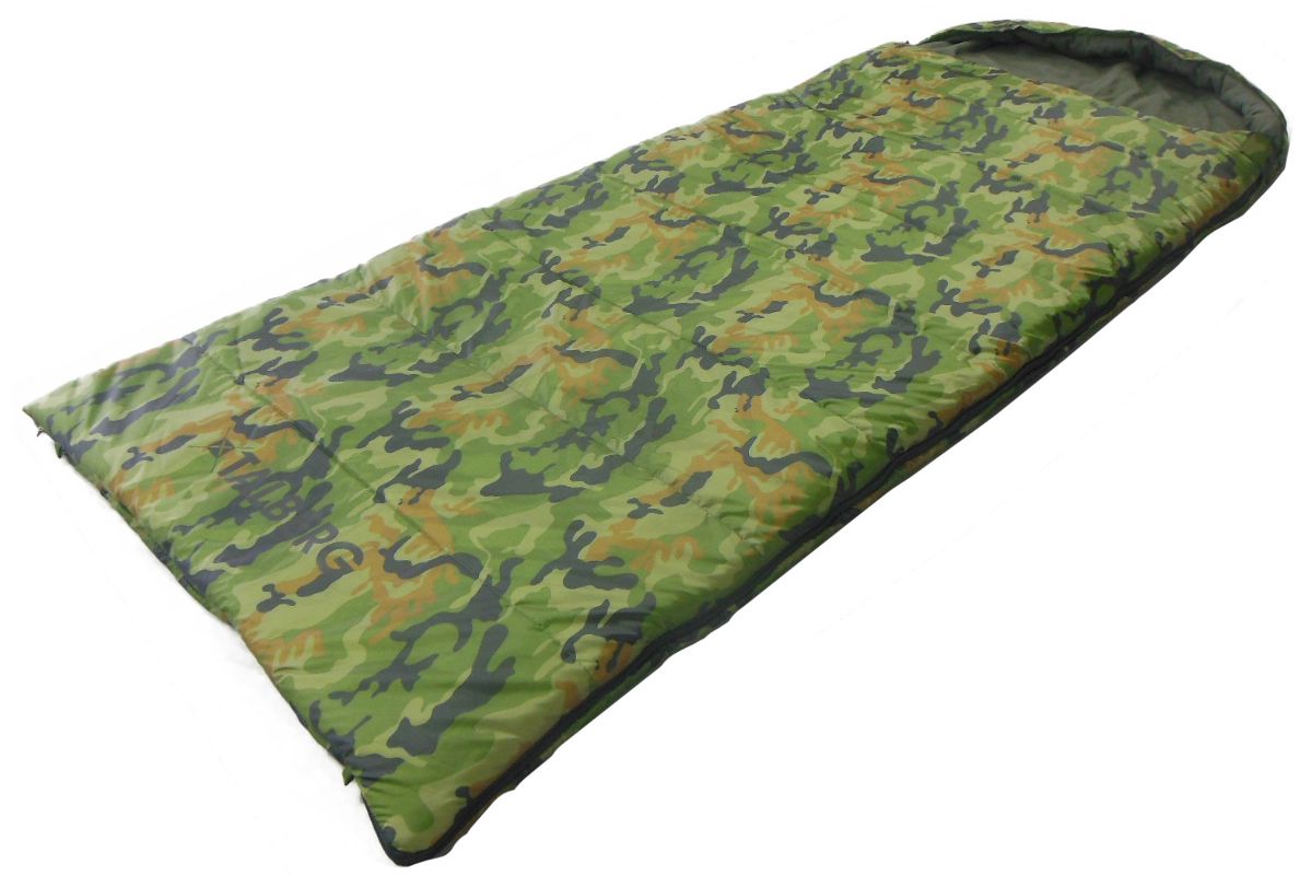 Супертёплый спальный мешок-одеяло с капюшоном камуфляжной расцветки woodland.